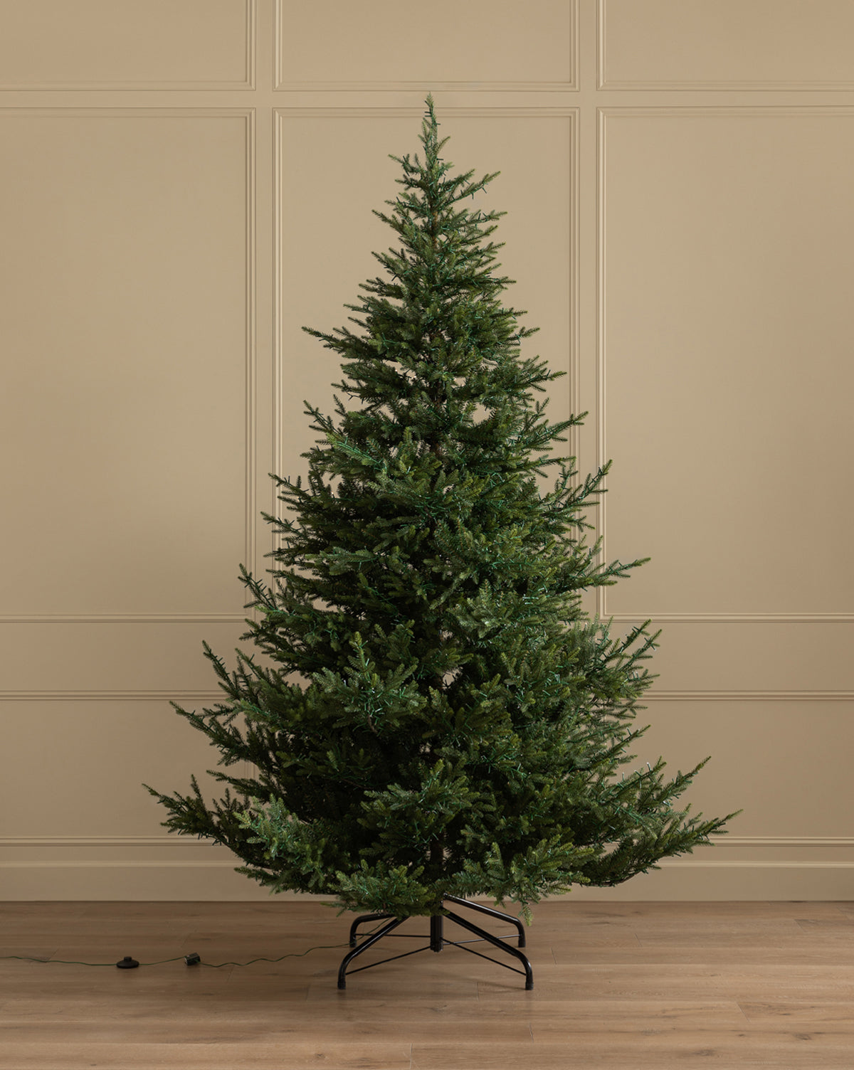 L'épicéa de Norvège artificiel pré-illuminé de 2,7 m rappelle à merveille le vrai pin. Ses branches et ses aiguilles sont soigneusement conçues pour apporter mouvement et volume à votre espace, tout en célébrant l'aspect naturel de ces magnifiques arbres. Doté de 8 000 LED blanc chaud, de huit effets scintillants, d'une minuterie de huit heures et d'un interrupteur à pied, cet épicéa artificiel est à la fois fonctionnel et festif, conçu pour durer des années.