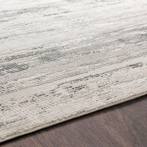 Tapis tissé à la machine. Confectionné en 70 % viscose et 30 % acrylique, ce tapis est durable et résistant. Poils ras de 0,9 cm. Coloris anthracite, gris, gris clair et blanc cassé. Fabriqué en Turquie.