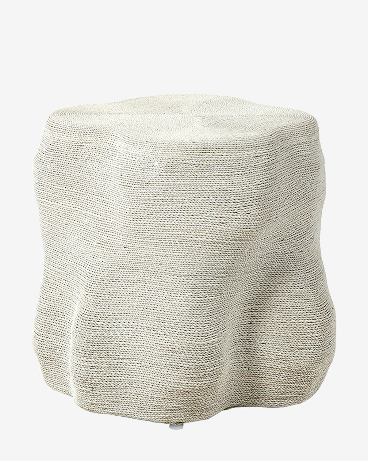 Inspirée de la nature, la table d'appoint Aphra est contemporaine et subtilement texturée. Une corde Lampakanay tissée à la main, blanchie à la chaux, l'entoure, apportant une touche unique au style de votre salon.