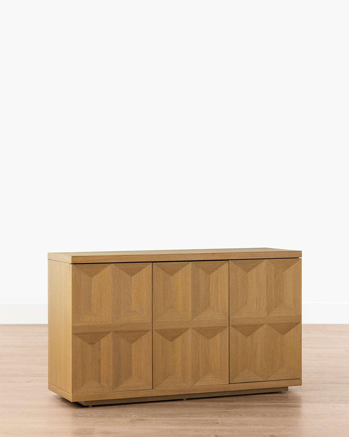 Avec son mélange de motifs géométriques et organiques qui apportent dimension et profondeur, notre buffet 3 portes Beacon adopte une approche épurée de la complexité visuelle. Doté de rangements spacieux, il allie fonctionnalité et esthétique, créant ainsi une pièce alliant praticité et design. Avec sa finition neutre, la version 3 portes de notre buffet classique s'intègre naturellement à tous les espaces.