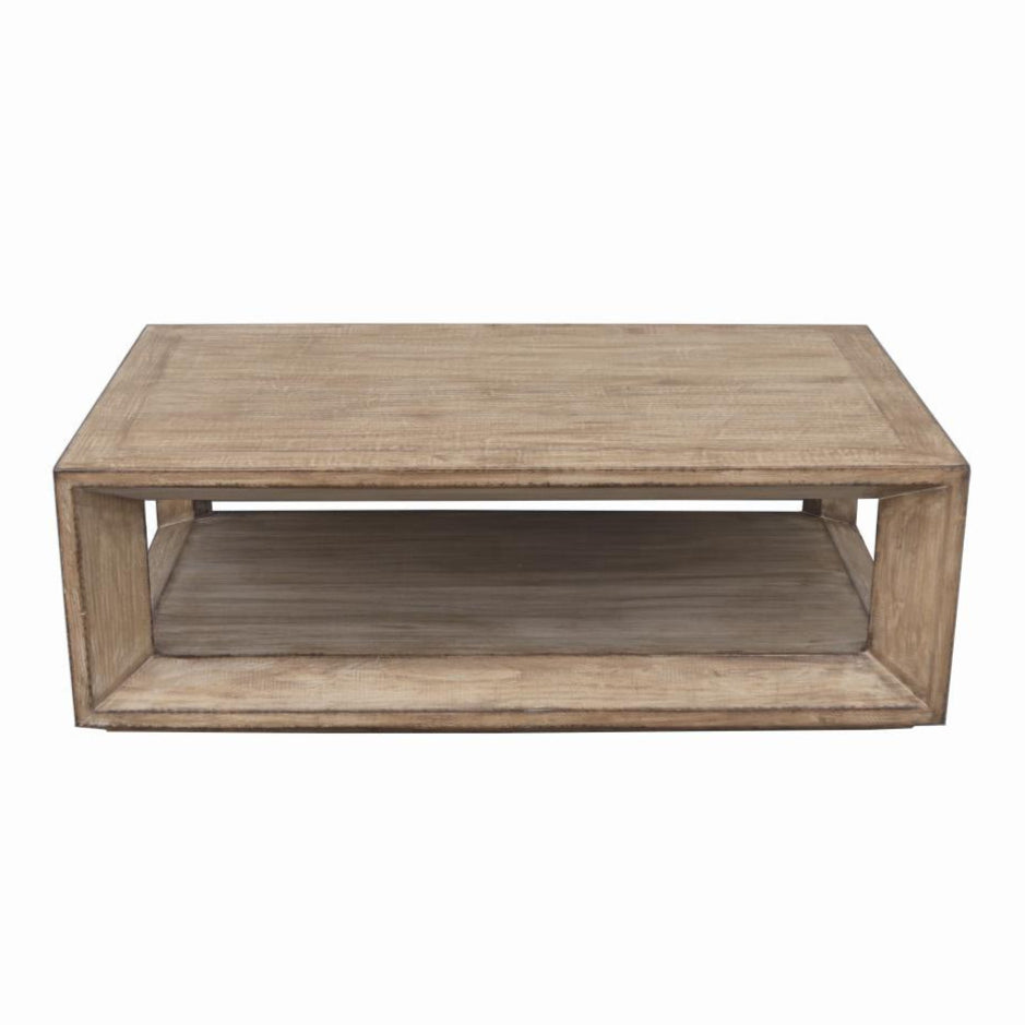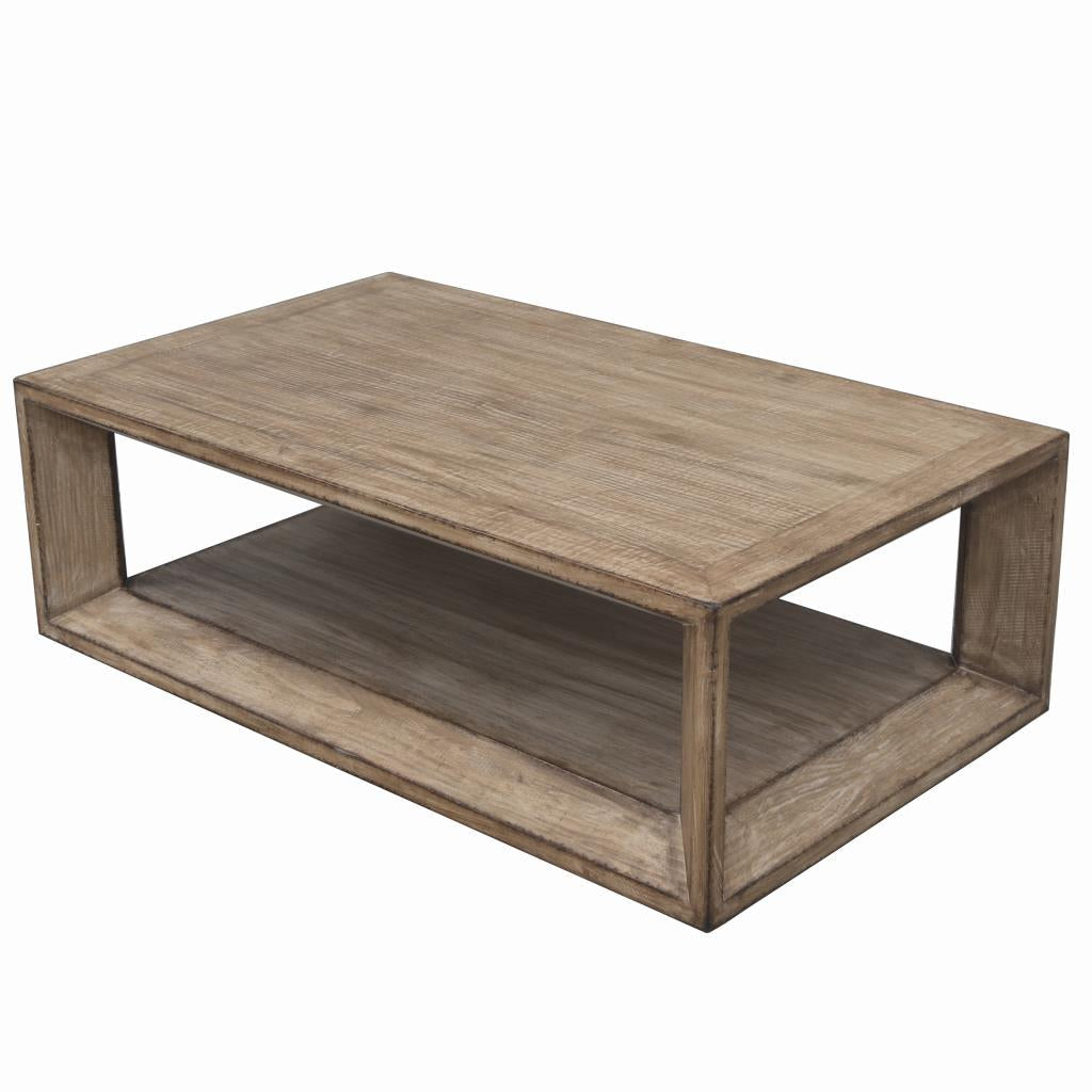Fabriqué en pin recyclé avec une finition naturelle vieillie. L'étagère inférieure offre un grand espace de rangement. Importé.