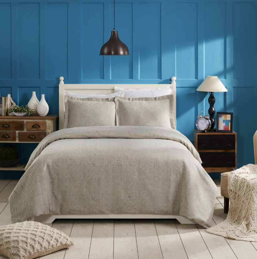 Housses de couette et taies d'oreiller 100 % coton jacquard. Fabriquées en Inde.