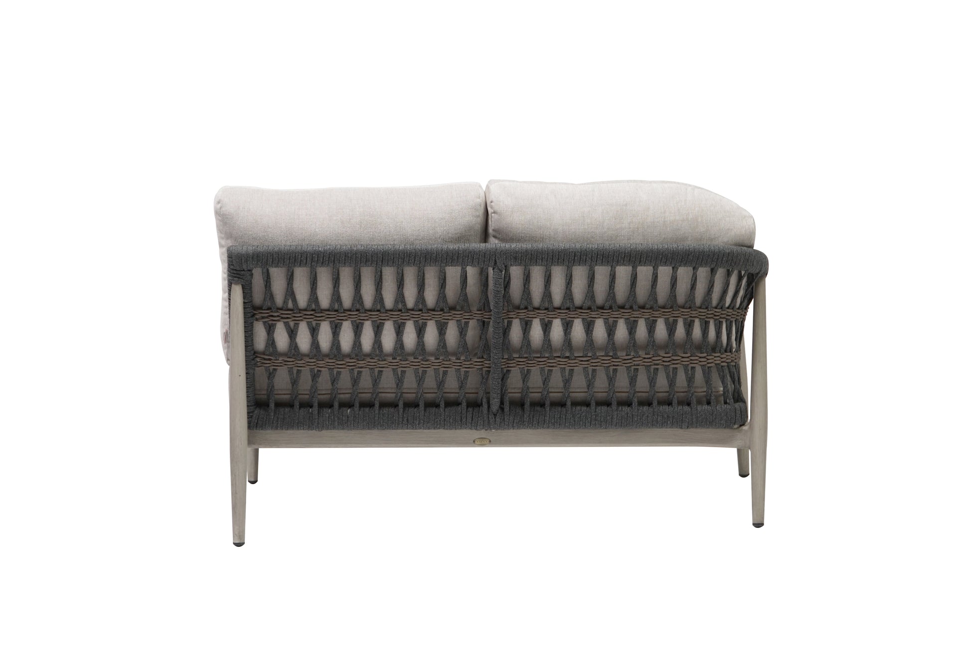 Des cordes en polyoléfine résistantes aux UV, tissées à la main avec soin, sur des cadres en aluminium thermolaqué, brossés à la main et résistants aux intempéries, caractérisent cette collection d'inspiration floridienne. Des coussins moelleux et arrondis en tissu Sunbrella résistant aux intempéries offrent un confort optimal. Importé.