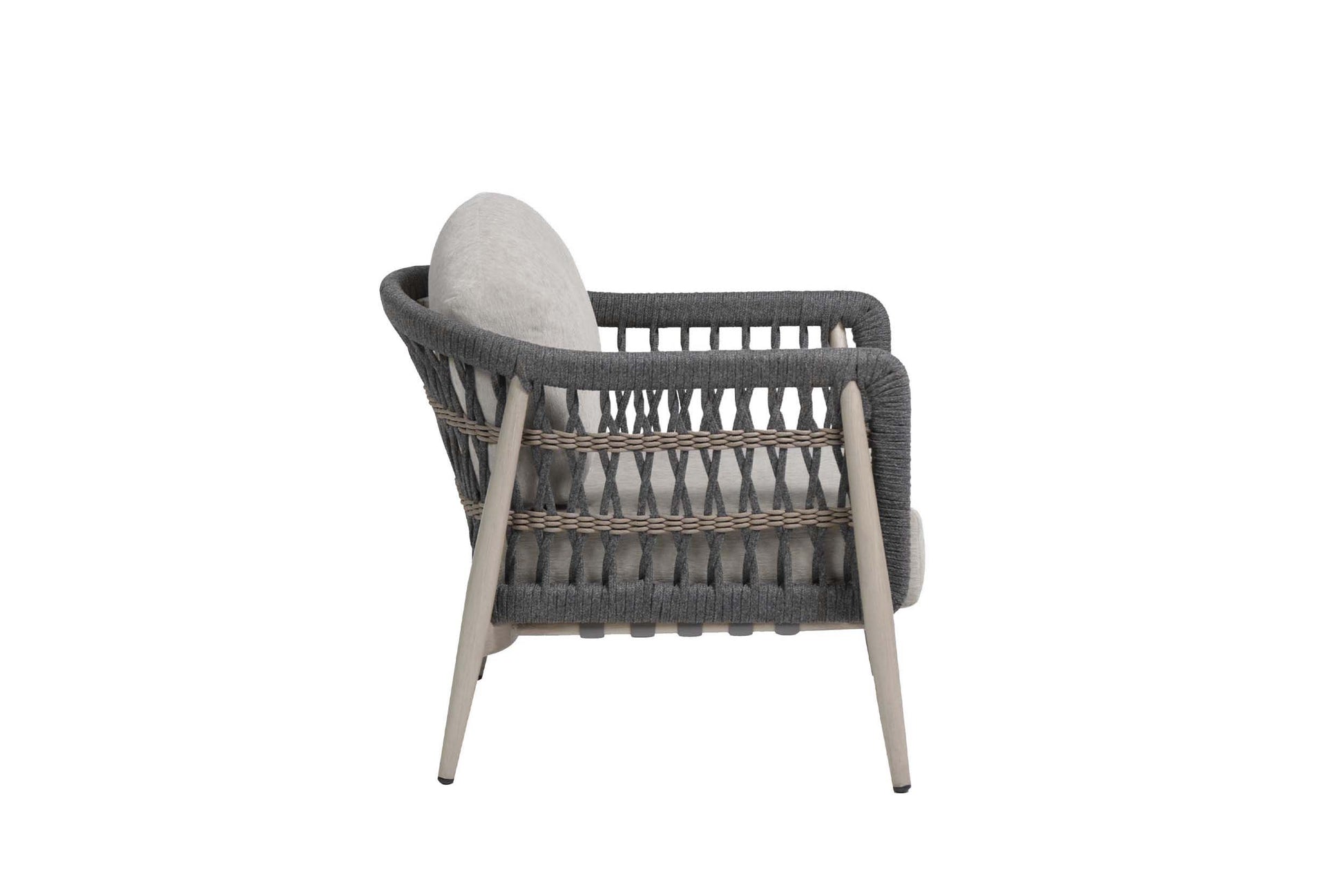 Des cordes en polyoléfine résistantes aux UV, tissées à la main avec soin, sur des cadres en aluminium thermolaqué, brossés à la main et résistants aux intempéries, caractérisent cette collection d'inspiration floridienne. Des coussins moelleux et arrondis en tissu Sunbrella résistant aux intempéries offrent un confort optimal. Importé.