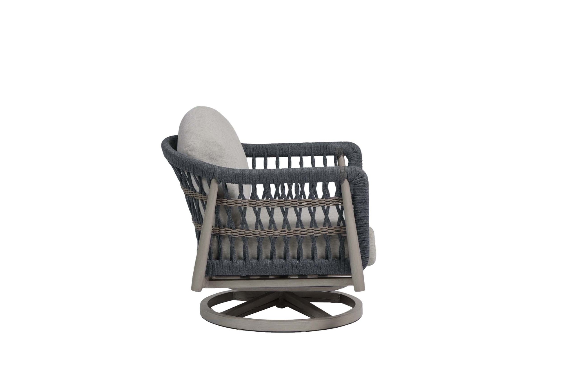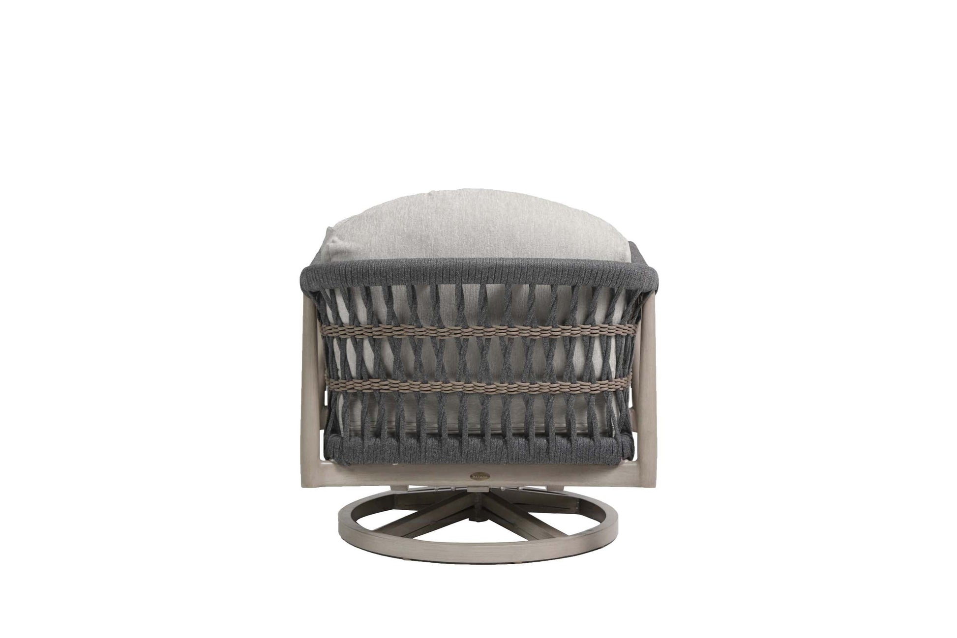 Des cordes en polyoléfine résistantes aux UV, tissées à la main avec soin, sur des cadres en aluminium thermolaqué, brossés à la main et résistants aux intempéries, caractérisent cette collection d'inspiration floridienne. Des coussins moelleux et arrondis en tissu Sunbrella résistant aux intempéries offrent un confort optimal. Importé.