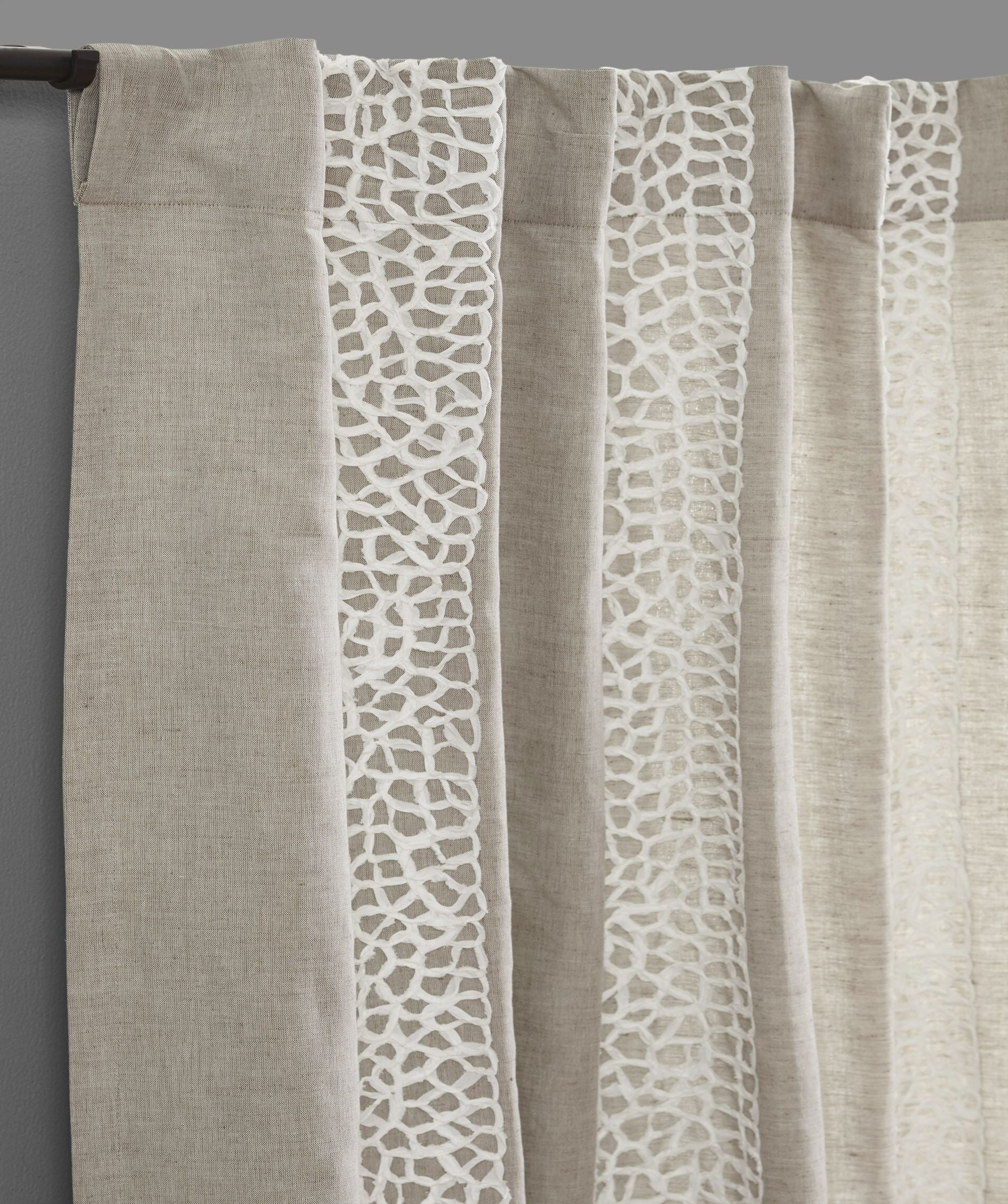 100 % lin et coton. Panneau de draperie doublé avec passe-tringle et pattes arrière. Largeur : 16,3 m. Fabriqué en Inde.