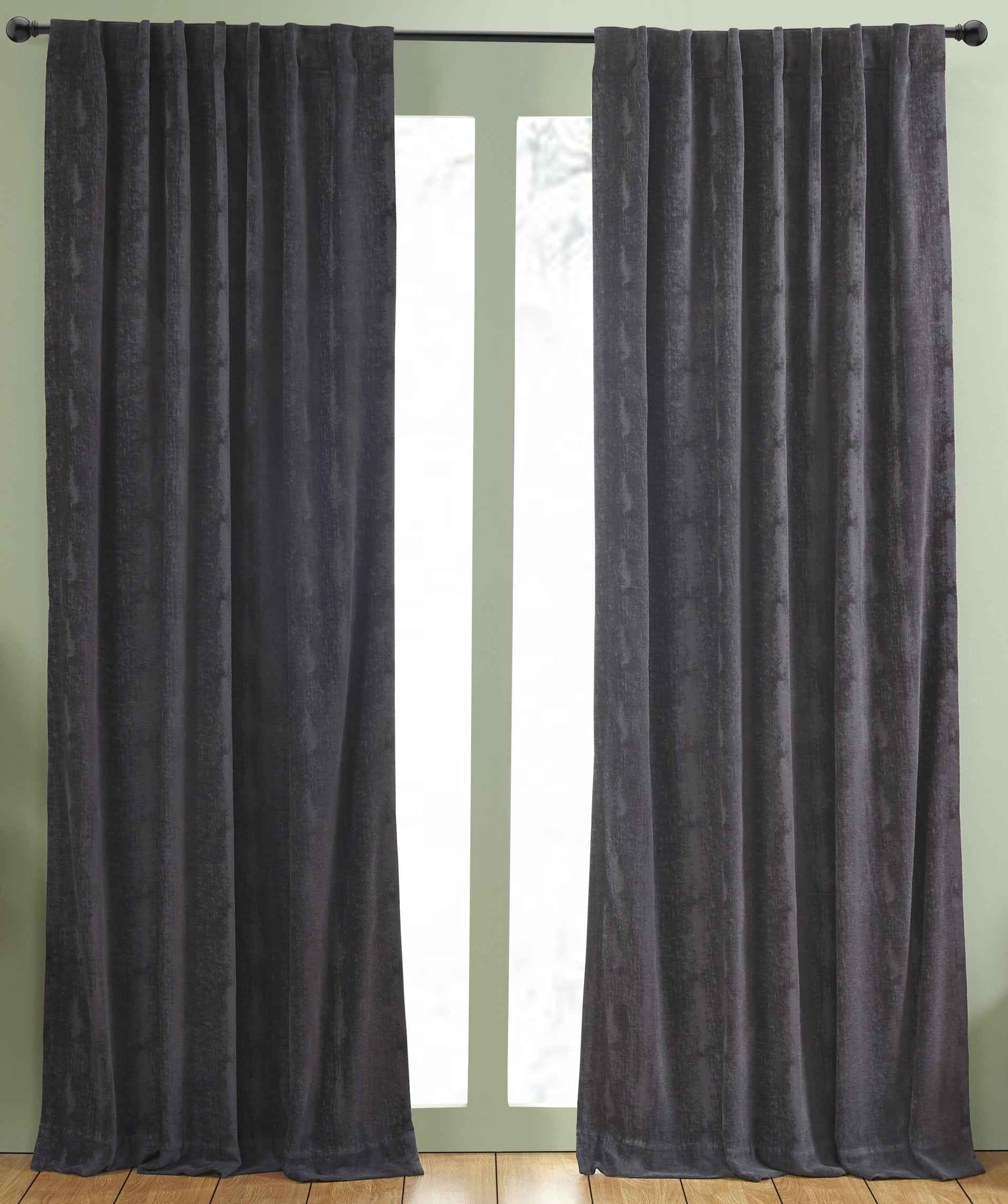 Panneau de draperie doublé en velours 100 % coton, avec passe-tringle et pattes arrière. Largeur : 16,3 m. Fabriqué en Inde.