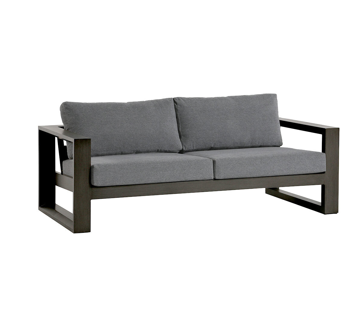 Des lignes audacieuses et élégantes définissent cette collection d'extérieur accueillante et élégante. Fabriquée exclusivement en aluminium léger, elle offre une résistance aux intempéries et une mobilité optimales. Finition gris cendré brossée à la main. Les coussins d'assise en mousse réticulée résistante aux intempéries, recouverts de tissus d'extérieur Sunbrella, garantissent une longue durée de vie et un entretien facile. Importé.