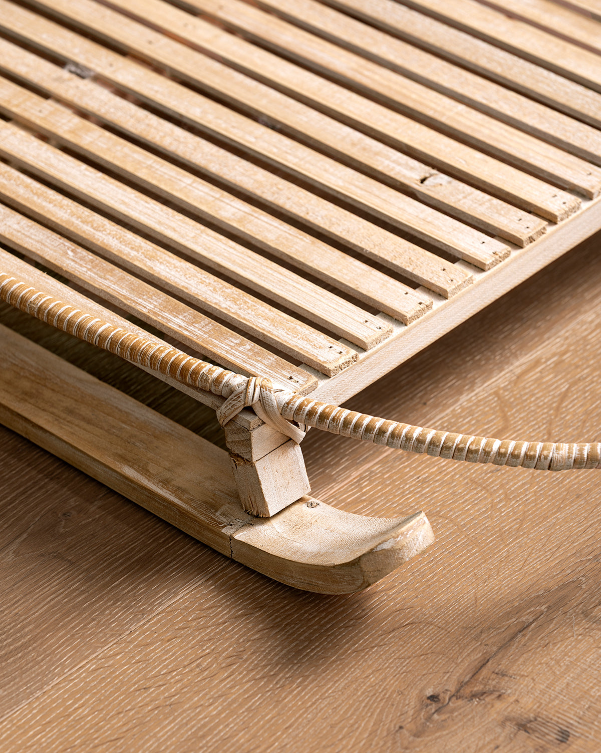 Fabriqué avec un charme nostalgique, notre traîneau en bois de sapin s'impose comme un élément de décoration de saison. Avec sa finition en bois naturel, ses patins incurvés et sa structure à lattes ouvertes, il est parfait comme centre de table festif, comme décoration de base de sapin ou, associé à de la verdure, pour un style de Noël raffiné.