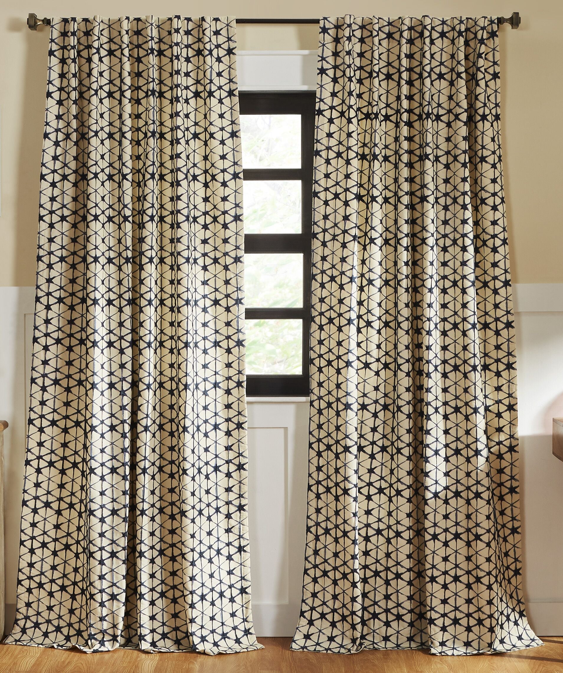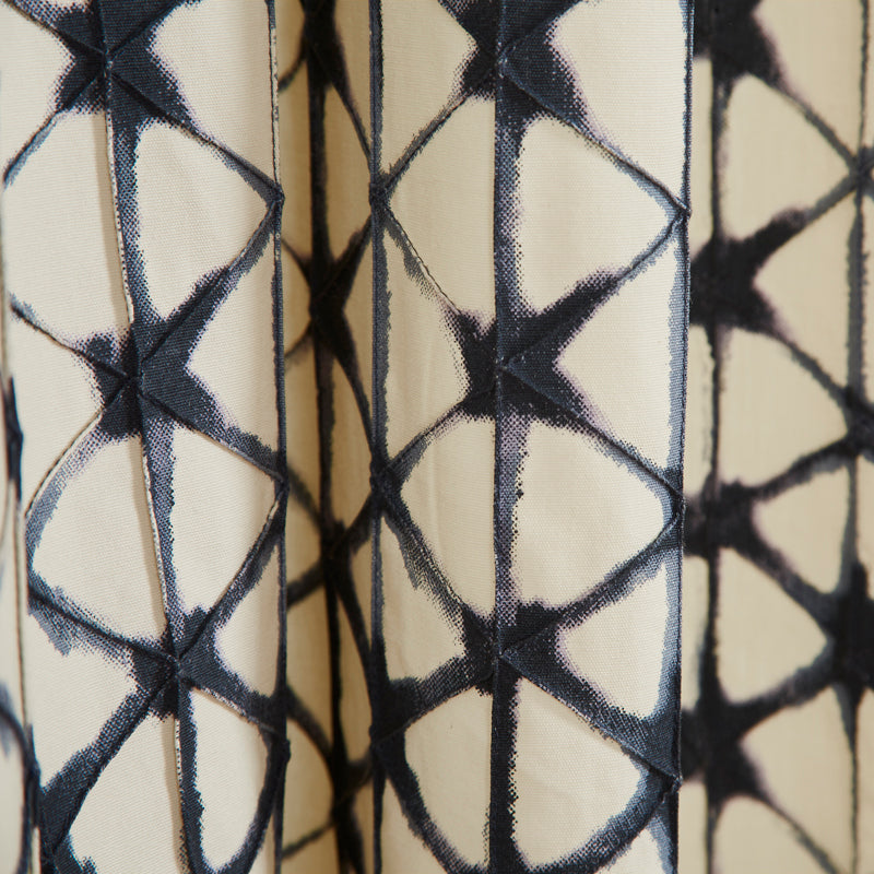 Panneau de draperie 100 % coton tie-dye à plis nervurés. Doublé, avec passe-tringle et pattes arrière. Largeur : 16,3 m. Fabriqué en Inde.
