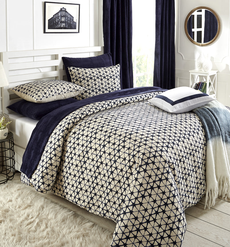 Housse de couette et taies d'oreiller tie-dye indigo