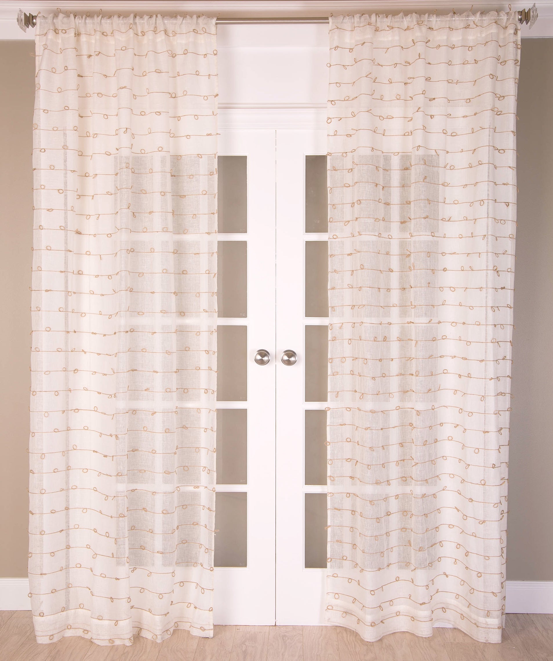 75 % lin, 25 % jute. Panneau non doublé avec passe-tringle. Largeur : 16,3 m. Fabriqué en Inde.