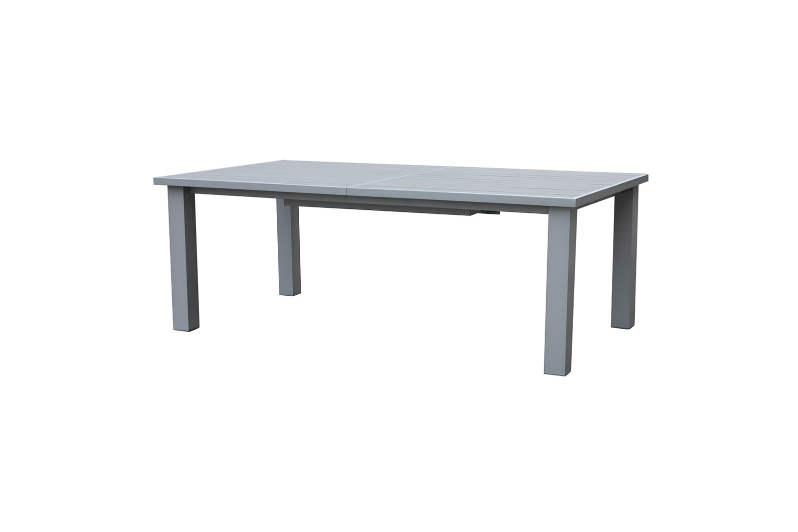 Fabriquée en aluminium thermolaqué pour plus de solidité et de durabilité, la table Mezo est dotée d'extensions centrales papillon faciles à utiliser, permettant de passer de 24,5 à 36,5 m de longueur. Son plateau à lattes est à la fois élégant et pratique. Disponible en finition frêne, marron ou gris. Importé.