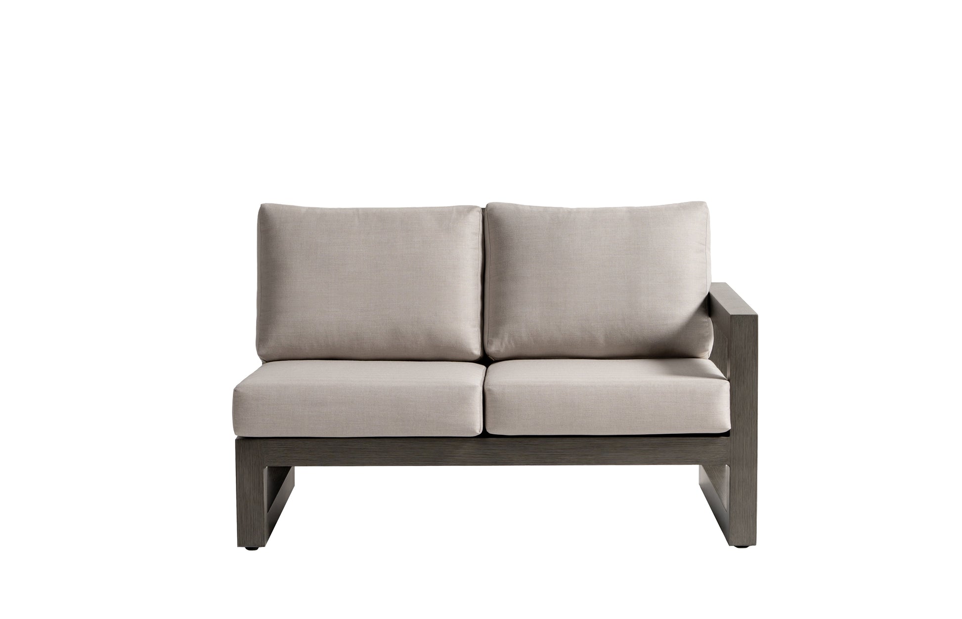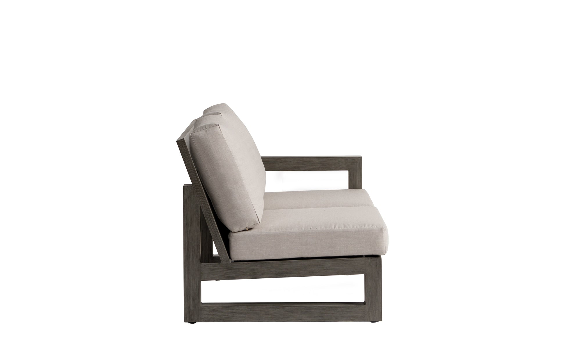 Des lignes contemporaines et élégantes définissent cette collection d'extérieur accueillante et intemporelle. Fabriquée exclusivement en aluminium léger, elle offre une résistance aux intempéries et une grande mobilité. Finition gris cendré brossée à la main. Les coussins d'assise en mousse réticulée résistante aux intempéries, recouverts de tissus d'extérieur Sunbrella, garantissent une longue durée de vie et un entretien facile. Importé.