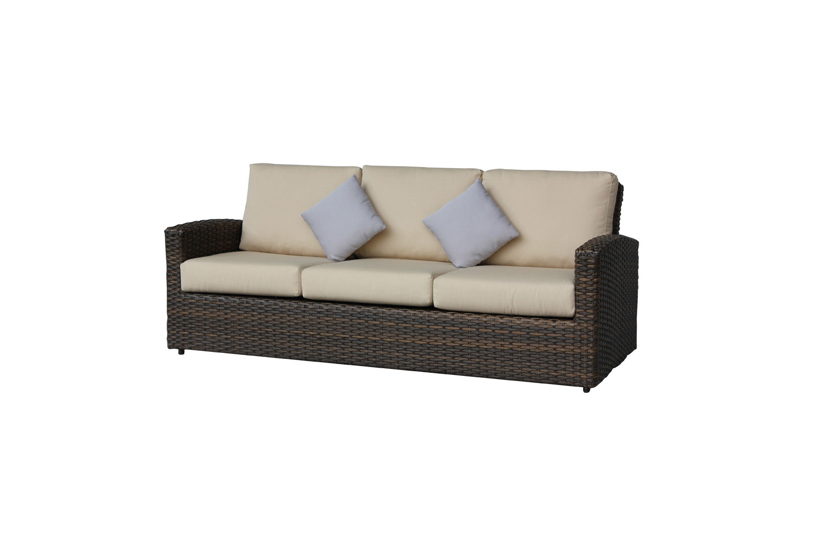 Le tissage épais et durable en résine, avec sa finition expresso, rappelle le tressage de l'osier. Les cadres en aluminium thermolaqué offrent résistance et durabilité par tous les temps. Les coussins sont spécialement conçus pour une utilisation en extérieur et recouverts d'un large choix de tissus d'extérieur résistants aux intempéries et à la décoloration. Importé.