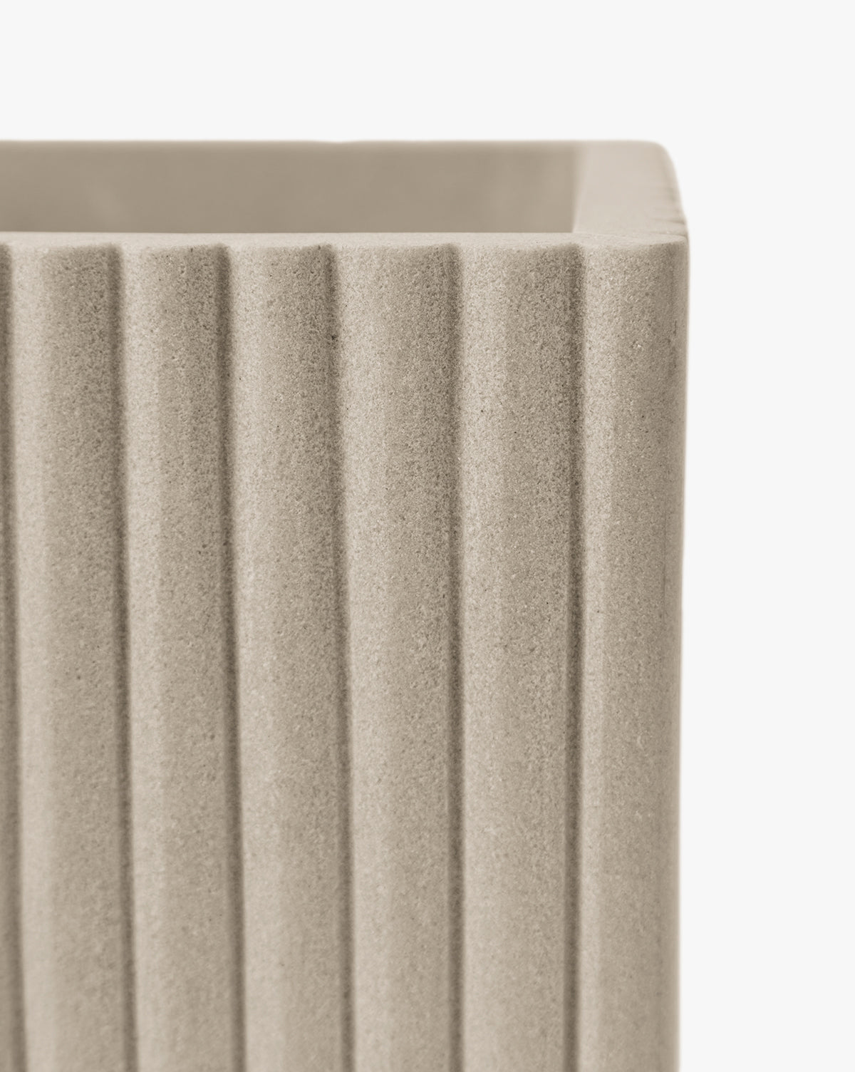 À la fois ludique et lourde, la poubelle Prentiss est fabriquée en grès menthe blanc cassé. Ses parois nervurées et sa forme carrée apportent dimension et praticité à votre salle de bains.