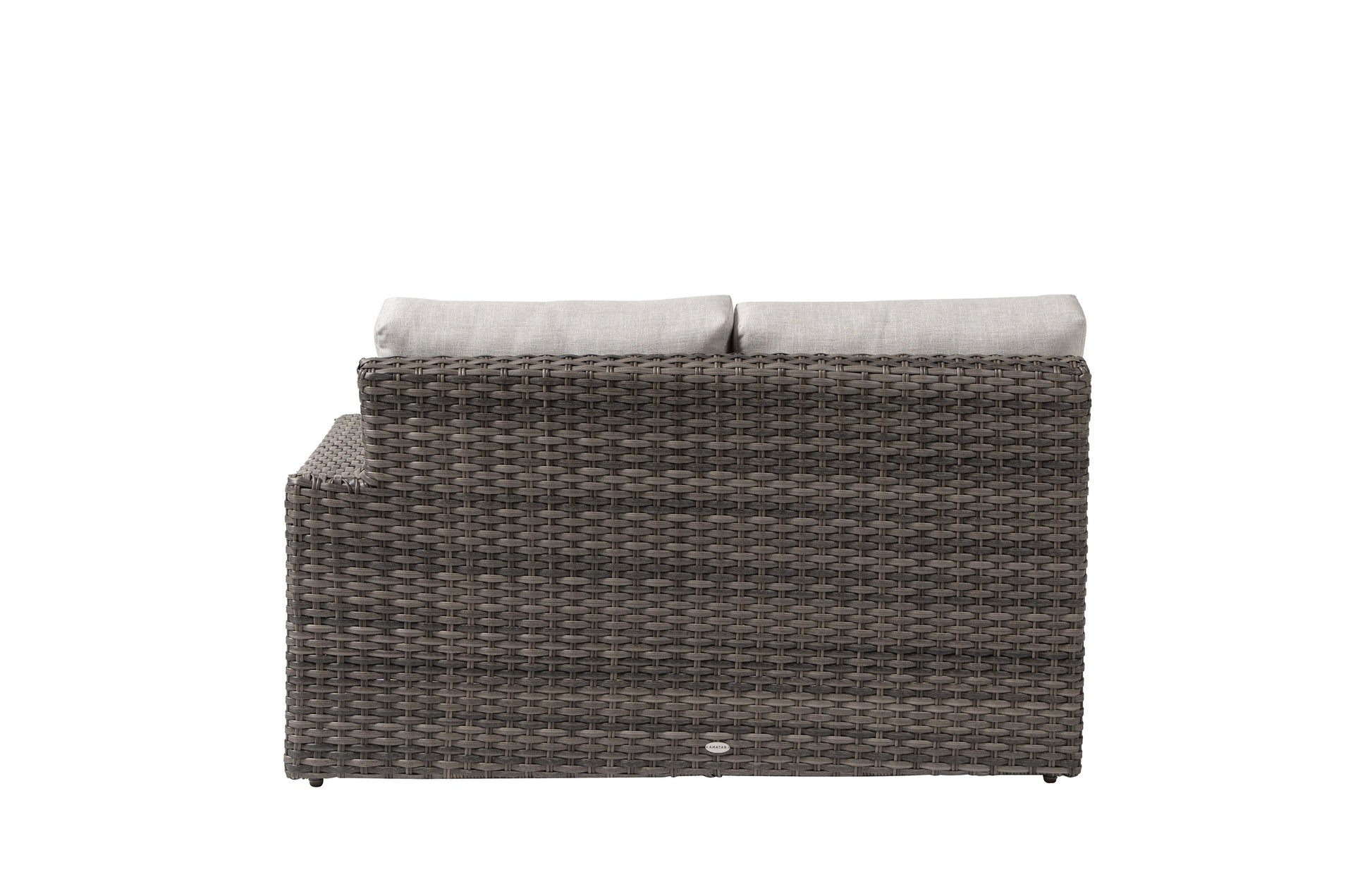 Tissé à la main avec soin à partir d'une résine tressée épaisse et très résistante, couleur gris brouillard. Les cadres en aluminium thermolaqué offrent robustesse et durabilité. Les coussins sont spécialement conçus pour une utilisation en extérieur et recouverts d'une large sélection de tissus d'extérieur durables Subrella. Importé.
