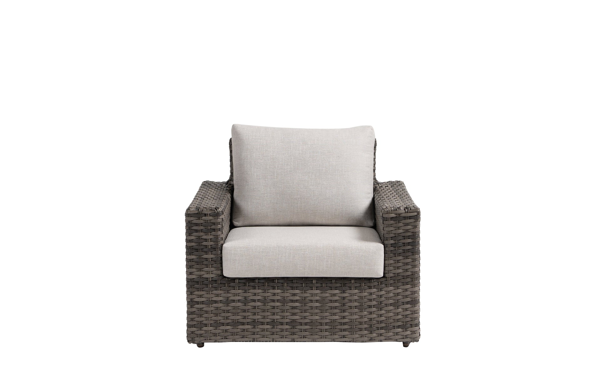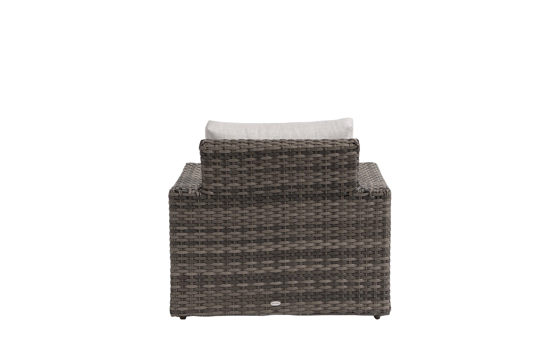 Tissé à la main avec soin à partir d'une résine tressée épaisse et très résistante, couleur gris brouillard. Les cadres en aluminium thermolaqué offrent robustesse et durabilité. Les coussins sont spécialement conçus pour une utilisation en extérieur et recouverts d'une large sélection de tissus d'extérieur durables Subrella. Importé.