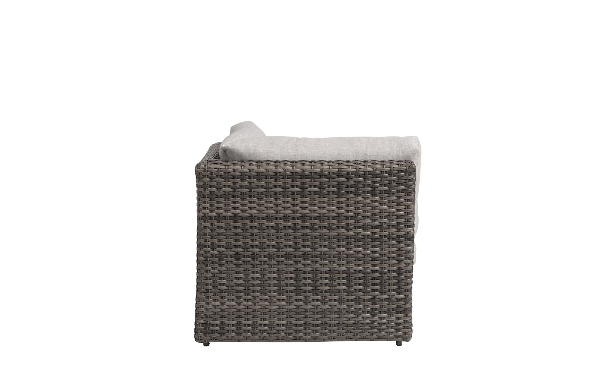 Tissé à la main avec soin à partir d'une résine tressée épaisse et très résistante, couleur gris brouillard. Les cadres en aluminium thermolaqué offrent robustesse et durabilité. Les coussins sont spécialement conçus pour une utilisation en extérieur et recouverts d'une large sélection de tissus d'extérieur durables Subrella. Importé.