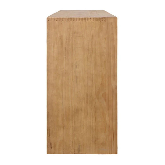 Fabriqué en pin massif recyclé avec finition naturelle. Poignées en fonte noire et charnières à fermeture amortie de haute qualité. Importé.