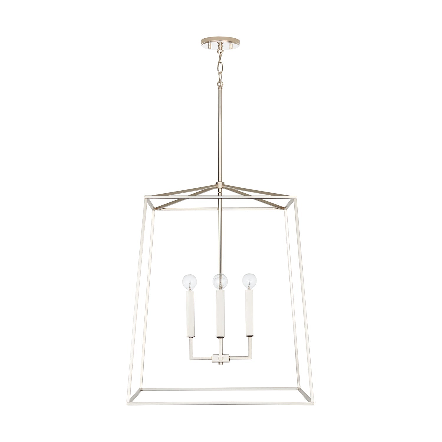 Des lignes élégantes et épurées définissent ce luminaire d'entrée ou d'escalier sobre et élégant. Sa finition nickel poli lui confère un charme sophistiqué et saisissant. Comprend une tringle amovible assortie de 1,80 m à 5,50 m et une plaque de plafond assortie. Disponible en trois tailles. Homologué UL. Importé.