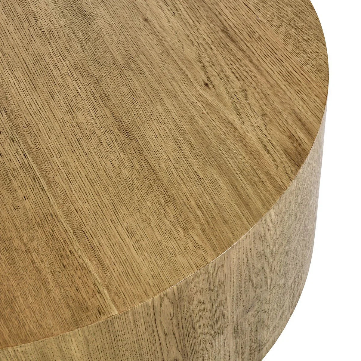 La table basse Wayne présente une construction élégante en placage de bois de chêne avec une base de socle élégante et des roulettes pratiques pour une mobilité facile.