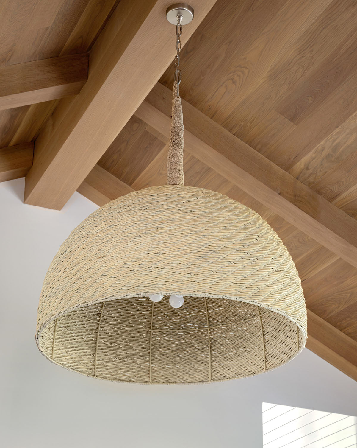 La suspension surdimensionnée Wisteria évoque un style côtier. Fabriquée en osier synthétique tressé à la main, elle est rehaussée d'un crochet en corde synthétique torsadée à la main. Sa finition blanchie à la chaux renforce son allure décontractée.